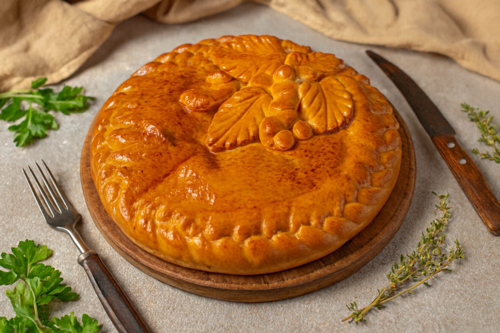 Сет "Для гостей" S (мал.): -Пирожки с курицей 3шт., -Пирожки с картошкой 3шт., -Пирожки с яйцом и зеленым луком 3шт., -Пирог с мясом и капустой(диаметр 25см; 800гр.) 1шт.